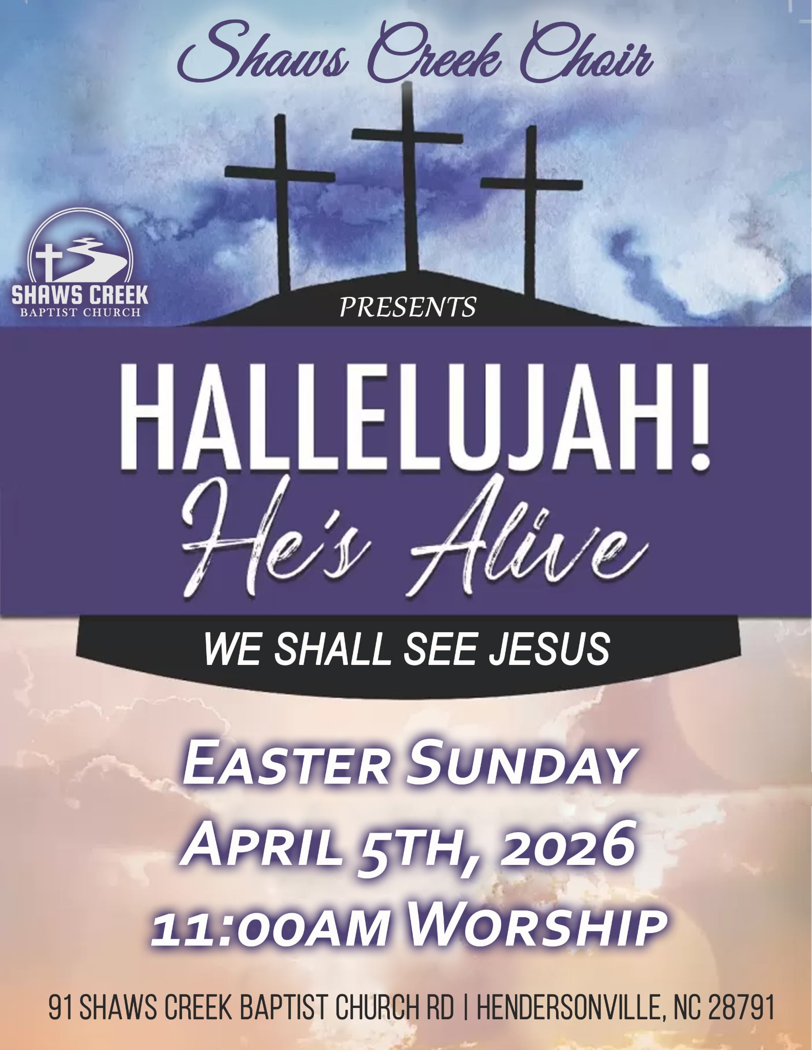 Join us for our annual Easter Cantata. Celebrate the risen Savior with Shaws Creek, as our 35-voice choir sings songs that share and show the Gospel!