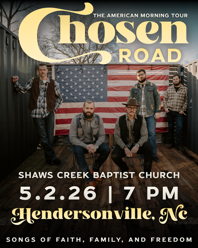 Join us as we worship with Chosen Road! This is a free concert (We will take up a love offering for their ministry). Bring the family for some great music that centers our hearts on Christ!